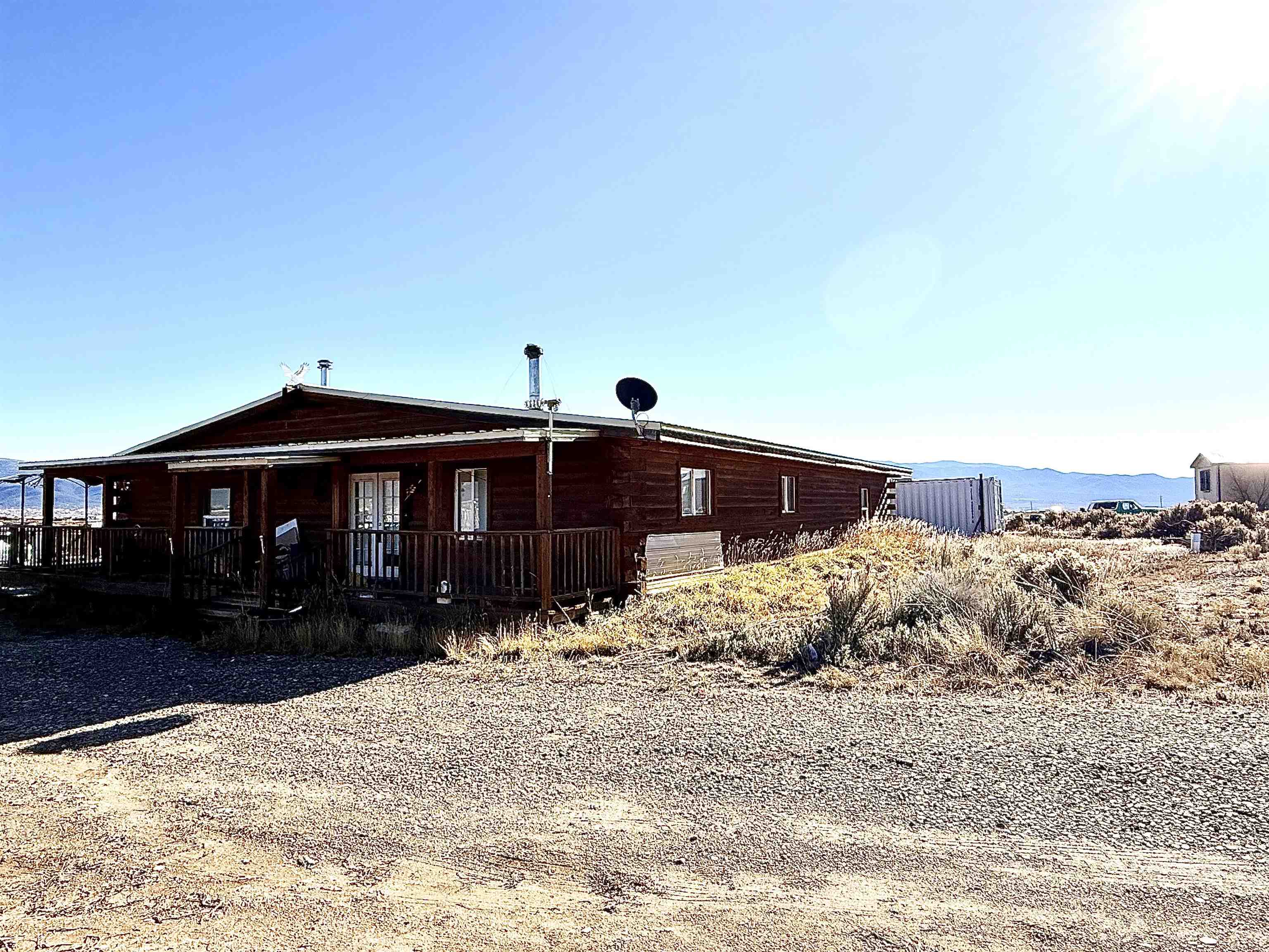 Charming log cabin with tons of character! Holds heat very nicely in the winter and stays cool in the summer. The master bedroom and living room have electric radiant heat and the 2nd and 3rd bedrooms have electric baseboards. There’s a wood stove and a third source of heat in the main living area - a space heater mounted to the ceiling. A nice, big open concept with so much square footage that an extra room could even be added if need be. A massive 2,700 square feet and a shed for storage outside. The home has a wrap around deck from the east to the north side and a covered porch at the north entrance. Perfect for BBQing, gatherings or watching the sunset on the mountains. A beautiful view from the porch and plenty of space to store wood for the winter. Some fencing on the north side but more fencing could be added to the entire property. Electrical outlets installed into the floor all over the home to easily decorate for Christmas or to create a reading nook with ambiance lights. Wood floors throughout, tongue and groove ceilings throughout most of the home and huge closets in each room! The master bedroom has a closet big enough to hold two twin size beds! Lots of room and immense amounts of character with the log cabin. Not far from town (14 minutes), the ski valley (32 minutes), Colorado (1 hour), or Santa Fe (1 hour, 26 minutes).