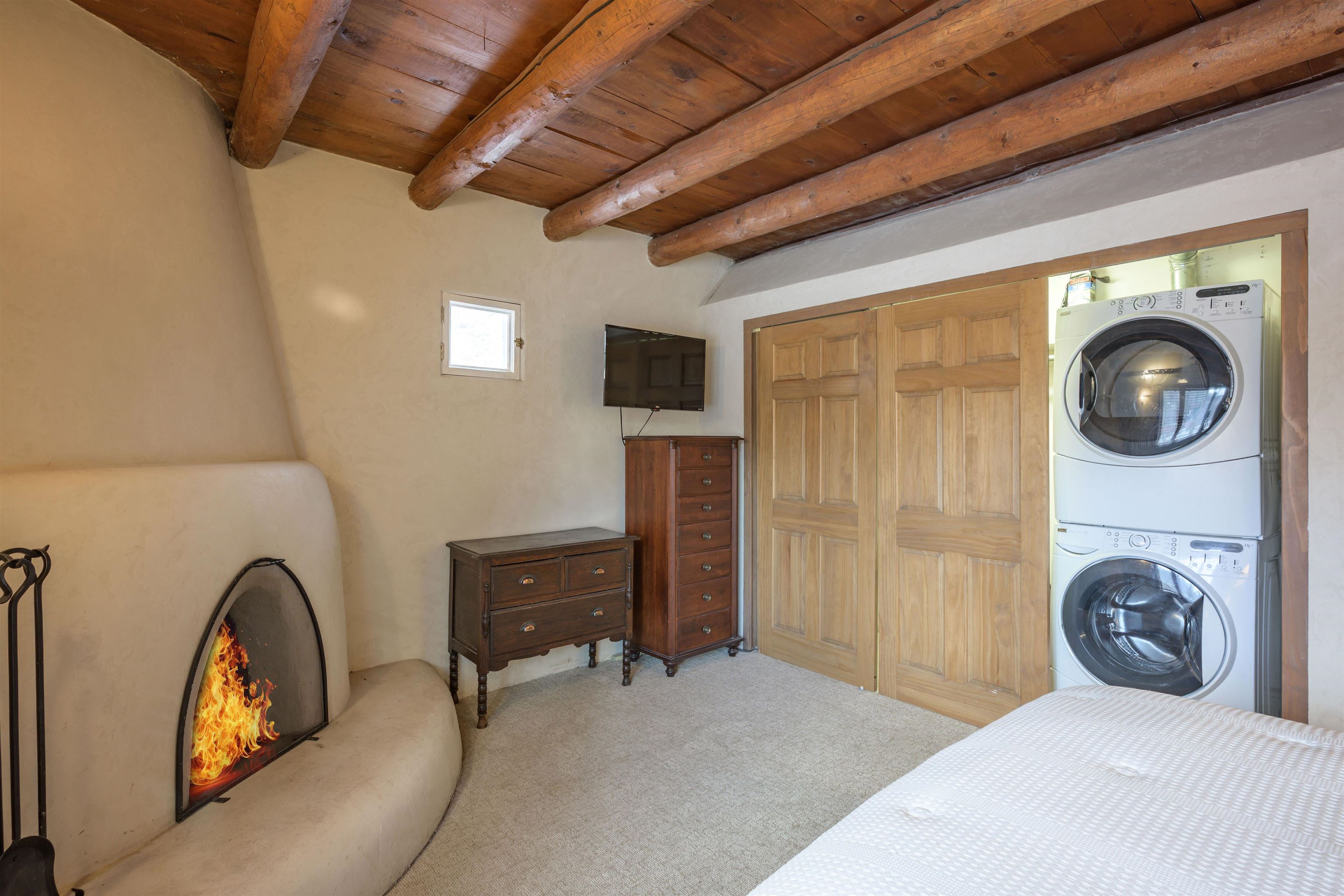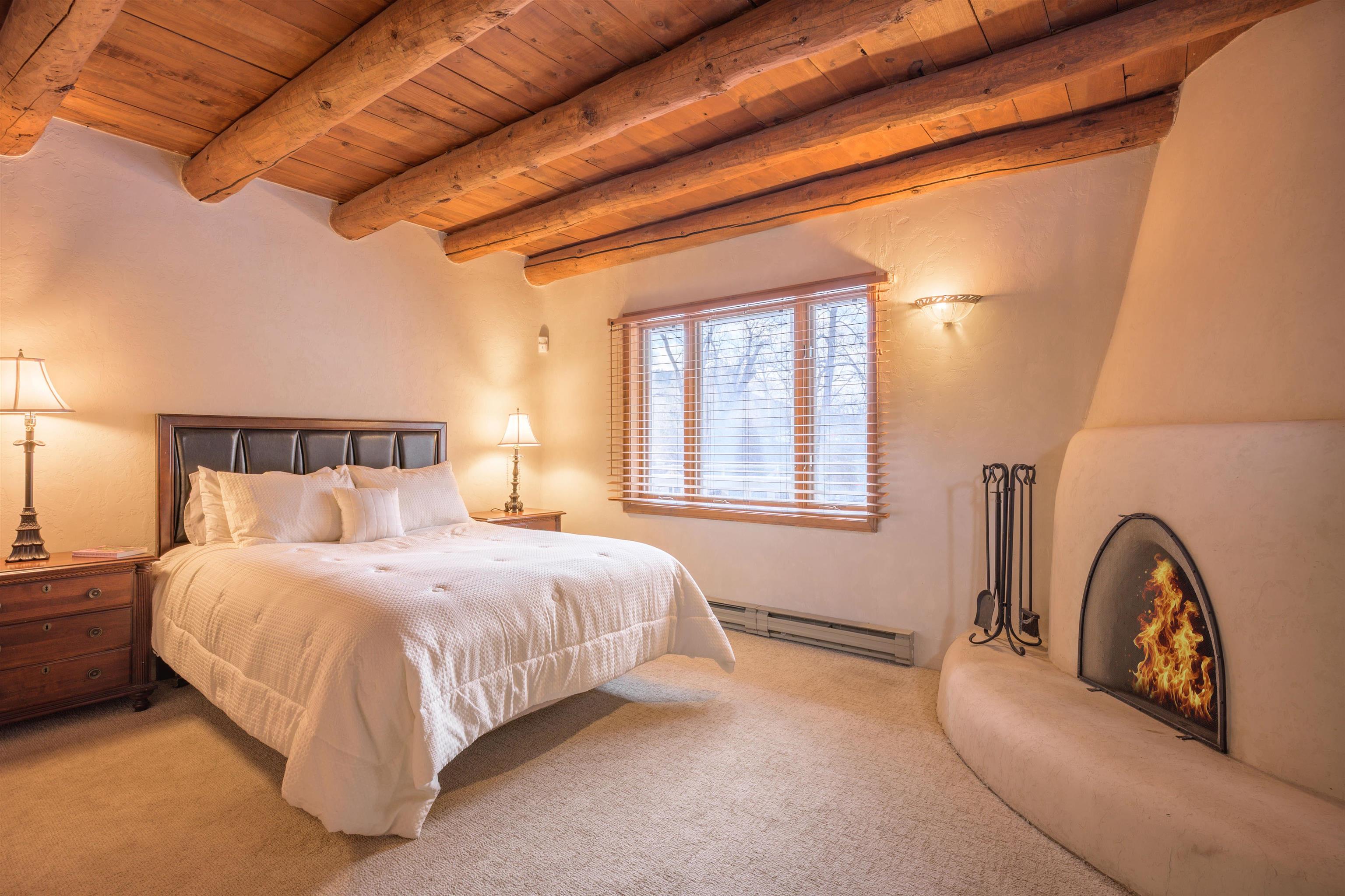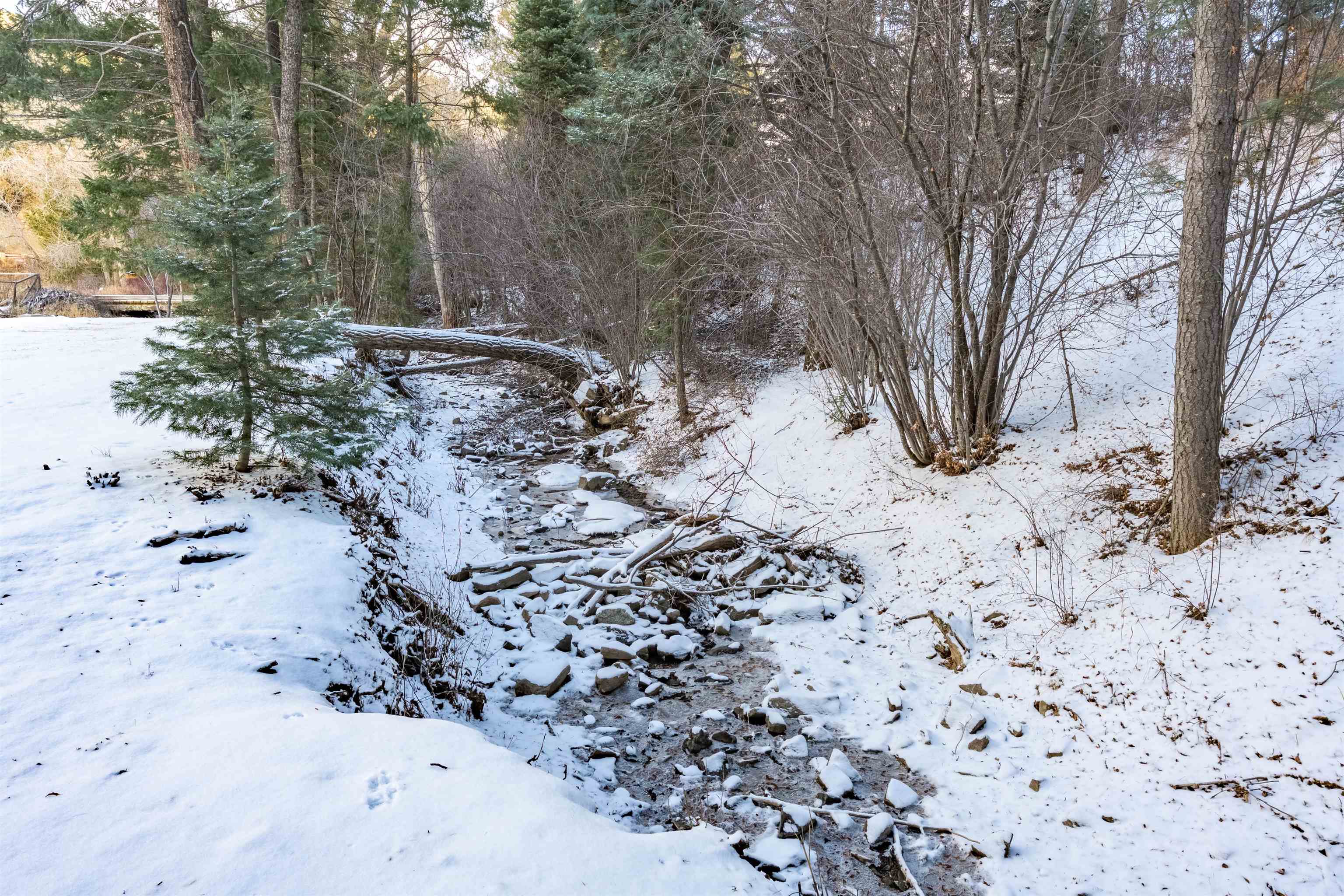 Your Winterwonderland Awaits! This turn key gem is being sold furnished as dipicted in the photos. Nestled in the heart of Taos Canyon along the Rio Fernando, this charming 1-bedroom adobe home offers a serene retreat on 0.91 acres of lush, wooded surroundings. Set back from the road and enveloped by mature trees, the property feels private and peaceful—an ideal escape just minutes from Taos and a short, scenic drive to Angel Fire or Taos. Inside, classic Southwestern craftsmanship shines through with vigas, tongue-and-groove ceilings, plaster walls, and a cozy kiva fireplace that warms the open living space. Large windows line the dining and living areas, bringing in natural light and uninterrupted views of the grassy yard and forest beyond. The updated kitchen features warm wood cabinetry, tile accents, stainless steel appliances, and a breakfast bar that blends seamlessly into the living space. The spacious bedroom includes its own kiva-style fireplace and looks out onto the surrounding greenery. A full bath and a conveniently located laundry closet complete the interior. Outdoor living is where this property truly stands out. Enjoy a morning coffee on the side patio, host gatherings on the large deck, or wander down to your own stretch of the Rio Fernando, where a shaded seating area offers a perfect spot to relax beside the running water. With nearly an acre of usable land, there’s ample room for gardening, pets, and outdoor recreation. Whether you're looking for a year-round residence or a tranquil mountain getaway, this Taos Canyon gem brings together privacy, natural beauty, and timeless Northern New Mexico character. This Gem Won’t Last Long! Reach Out Today to Schedule Your Exclusive Showing! NOTE: Fire in fireplaces are virtually staged.