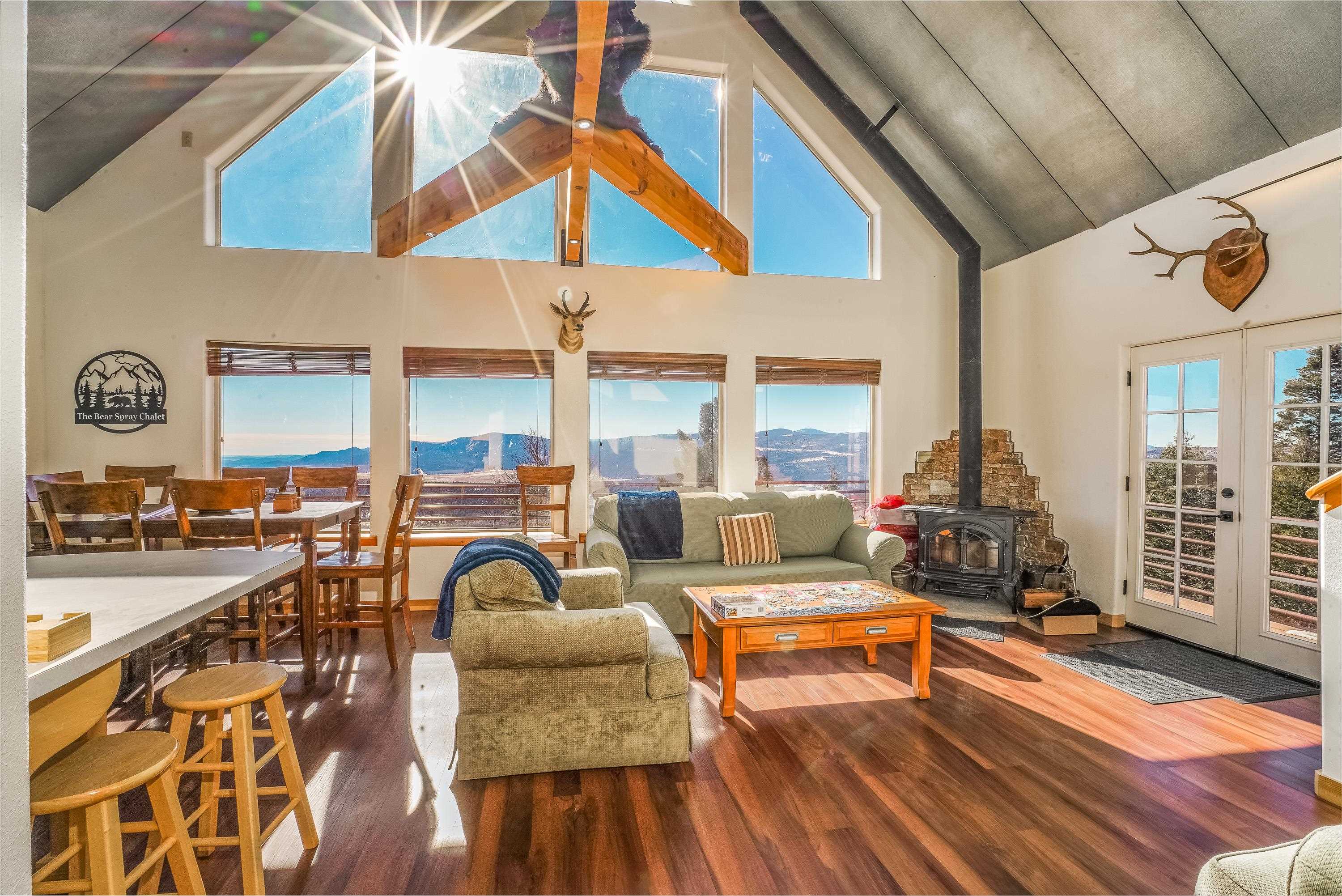 There’s living in the mountains… and then there’s living above them. That’s what 598 El Camino Real feels like, a ridge-top perch where the world opens up in every direction. The first thing you notice are the views. They’re not “pretty” views… they’re the kind that stop you mid-sentence because your brain needs a second to catch up. Eagles glide past the deck like they own the place, and sunsets spill across the peaks in colors that never look the same twice. The home itself has this easy, comfortable mountain energy, nothing fussy, nothing trying too hard. Just light, space, warmth, and that feeling of, yeah… I could stay here awhile. With three levels, vaulted ceilings, and windows that frame the landscape like giant art pieces, it’s built for people who want room to gather but also room to wander off and breathe. One of the best parts? Two separate living areas, each with its own kitchen. It’s perfect for extended family, guests who love to linger, or days when everyone needs their own rhythm. There’s even a loft with a full bath that feels like the perfect retreat for reading, working, or hiding with a blanket when the weather turns dramatic. Outside, the wooded lot gives you that classic Angel Fire feeling, tucked into the trees, surrounded by quiet, yet close enough to town to keep life easy. It’s the kind of property where morning coffee happens on the deck because the clouds literally drift below you. And evenings? They’re for slowing down, watching the sky catch fire, and reminding yourself that yes… you really do live here now. Life on this mountain top moves at a different pace. A better one. There’s space to breathe, space to reset, space to remember what matters. Whether you’re hosting a crowd for ski weekends or sneaking away for peaceful summers, this home stretches to fit whatever season of life you’re in. If you’ve been craving a mountain escape that feels both elevated and deeply grounding, a place with perspective, privacy, and that “wow” moment every time you step outside, this chalet on El Camino Real is ready to welcome you in. Come stand on that deck. The mountain will do the rest.
