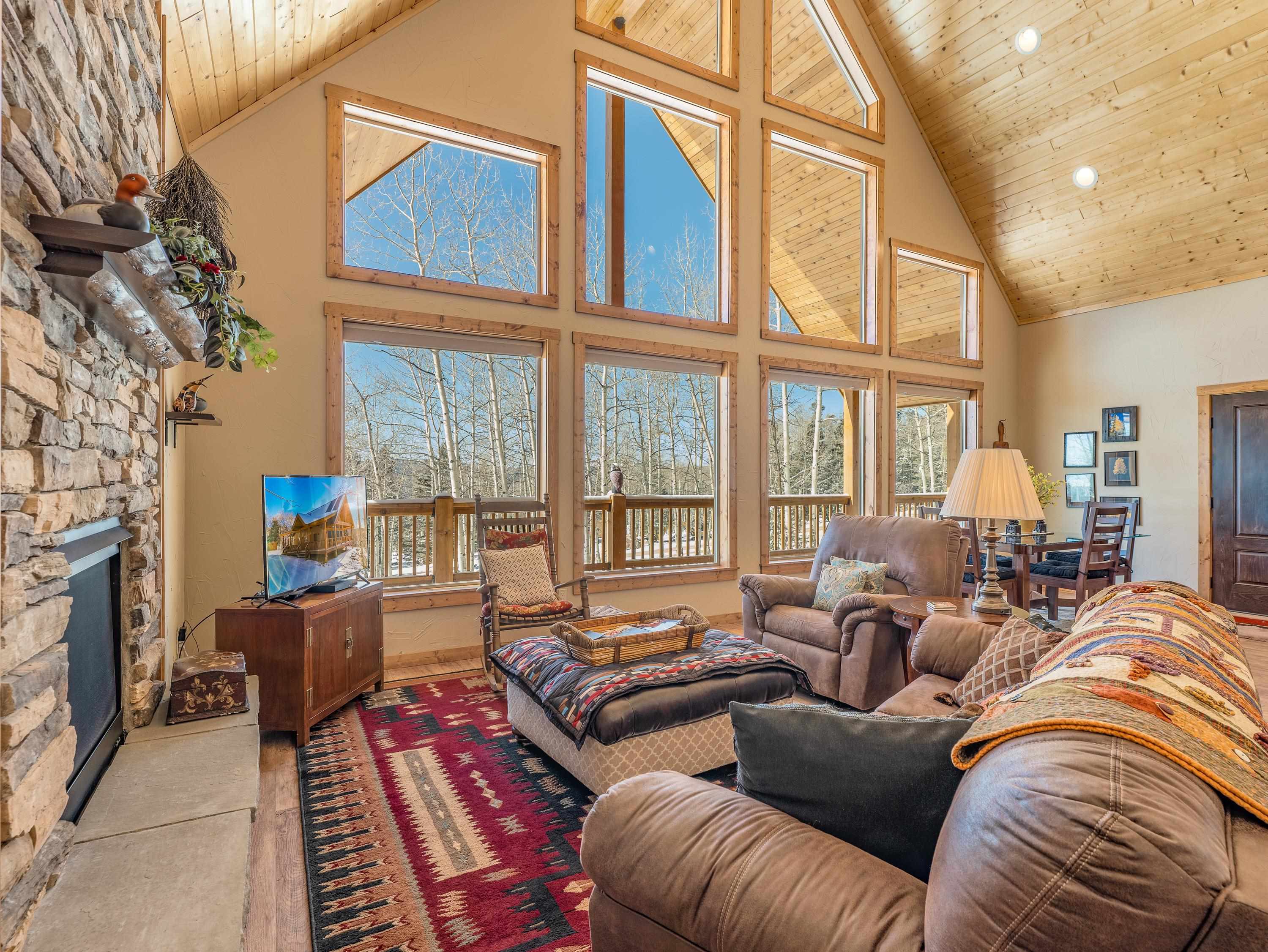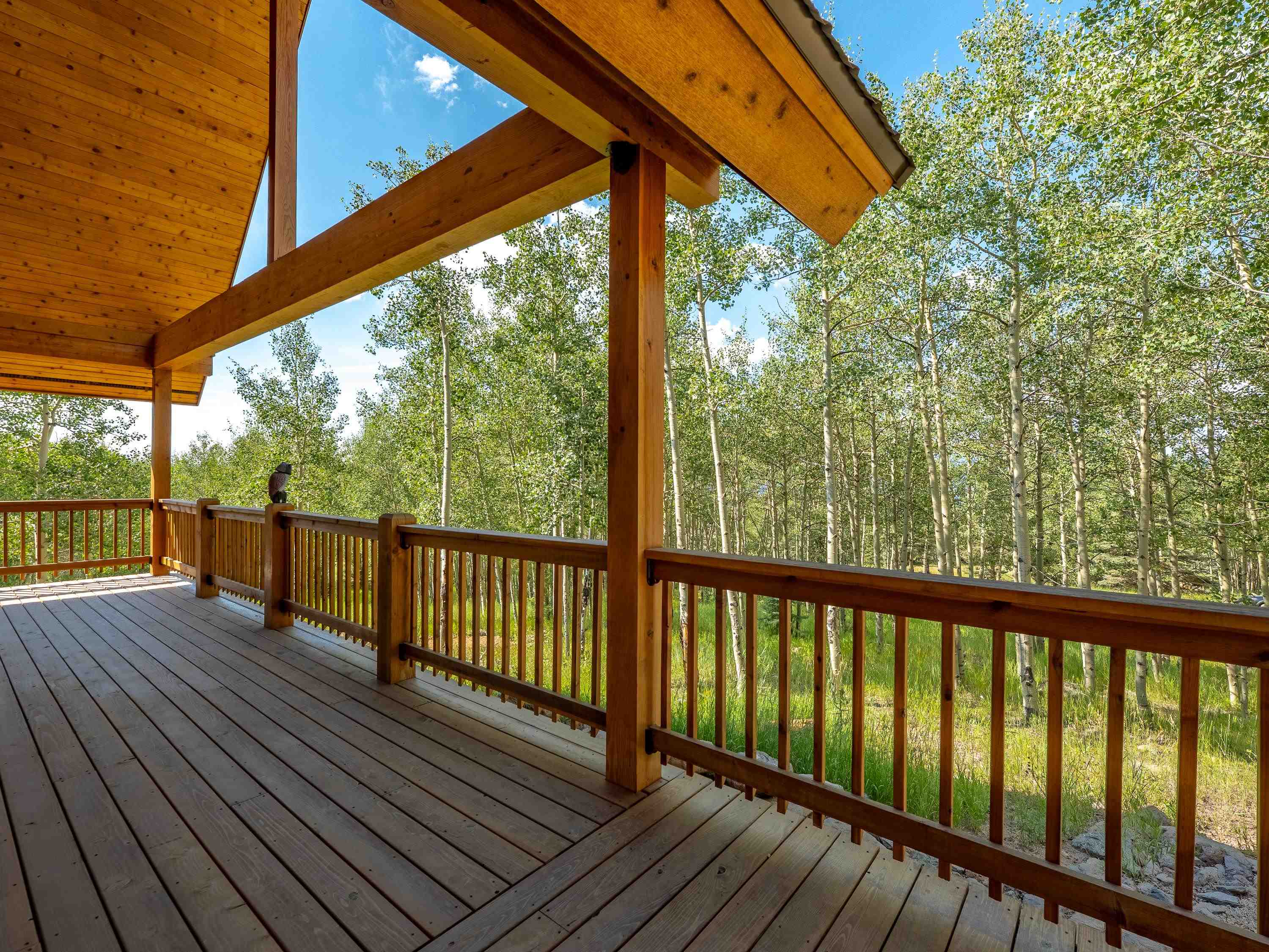 Nestled among a grove of quaking aspens, this charming home is ready to be your haven of tranquility. Built for effortless living, thisrecently completed retreat offers a serene and stylish escape with modern comforts throughout. Be wowed by breathtaking viewsthrough the expansive window wall from the moment you step inside, and let your worries melt away in the inviting atmosphere of thevaulted ceiling and spacious, open layout. Cozy up by the low-maintenance propane fireplace, prepare meals in the well-appointedkitchen—featuring premium, space-conscious appliances designed for smart and efficient living—while friends and family gather aroundthe large dining table. The main-floor primary suite features a lovely walk-in shower and a rustic vanity in the ensuite bathroom. If youseek a bit more privacy, the second bedroom is tucked above the living area, offering its own full bathroom and a cozy lofted sitting areaoverlooking the great room and stunning window wall. A roomy laundry area and a convenient half-bath complete the home’s thoughtfulinterior. Enjoy cool summer nights and sunny winter days from the expansive covered deck, and experience mountain adventures just ashort, scenic drive away at Angel Fire Resort. Leave your troubles behind and embrace mountain living at 395 El Camino Real in AngelFire, NM.