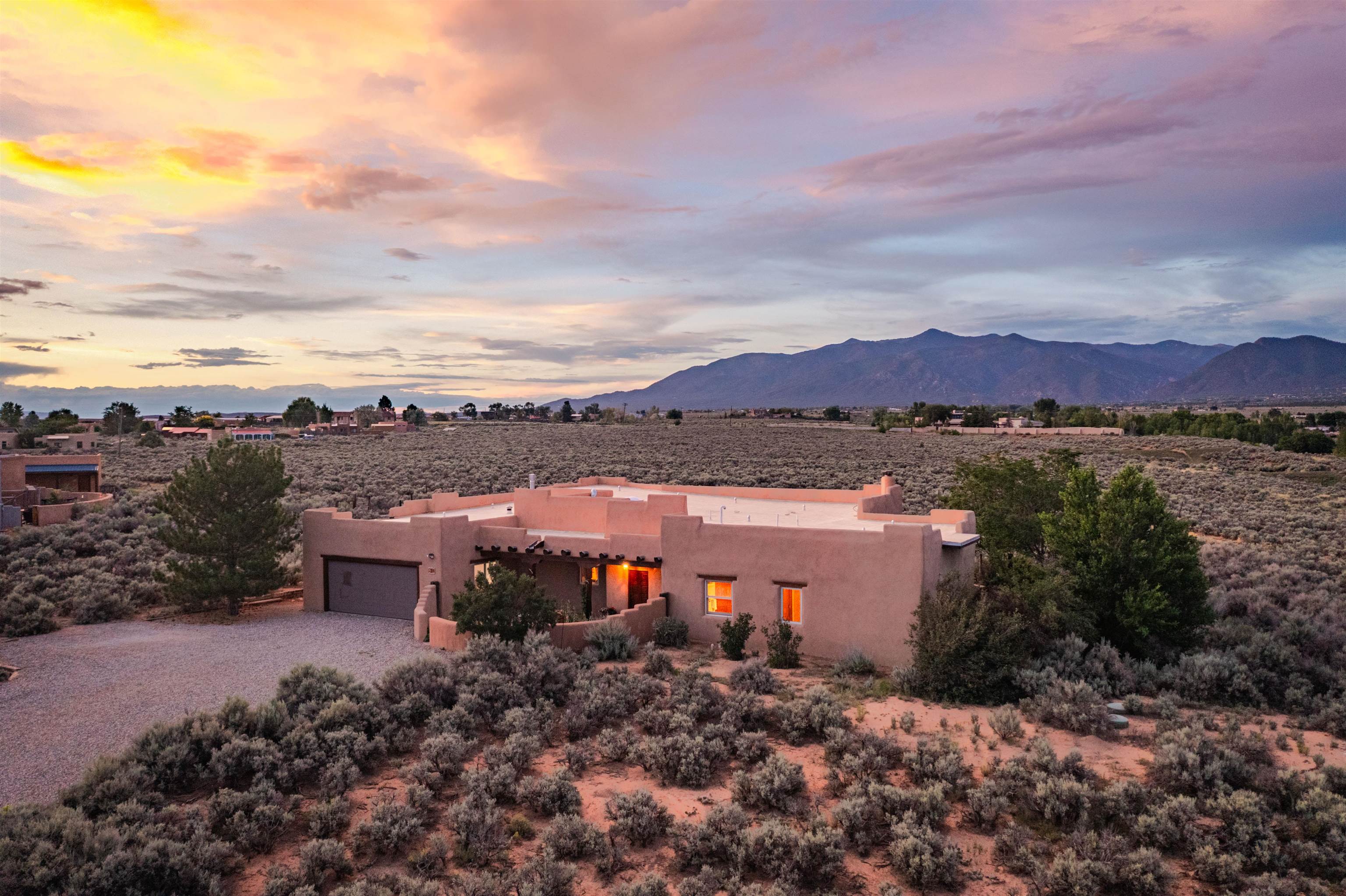 Charming Southwest-Style Home in Blueberry Hill Experience the warmth and character of this beautiful home, built with adobe construction and featuring a cozy wood-burning fireplace in the living room. The exterior has recently been updated with fresh stucco, enhancing its curb appeal. The open-concept living and dining areas create a welcoming space for daily living and entertaining. The updated kitchen boasts granite countertops and a picturesque view from the kitchen window, perfect for enjoying morning coffee or simply taking in the stunning mountain scenery. The front covered portal welcomes you home, complemented by a lovely garden walkway that adds charm and tranquility. The rear patio provides an ideal setting for outdoor gatherings while soaking in breathtaking mountain views—an incredible backdrop for relaxing, dining, or entertaining guests. The property also features an attached 2-car garage, providing convenient parking and storage. Located in the highly desirable area of Blueberry Hill, this home is close to Taos Ski Valley, shopping, and dining at the historic Taos Plaza. Whether you're seeking a full-time residence, a part-time retreat, or an income-generating investment property, this location offers versatility and appeal. Contact Cyndi today to schedule your private showing and discover all that this charming property has to offer!