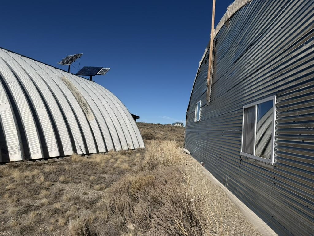 Dream work space/shop: ever wanted to build a plane? This could be the place to do it. 17 Acres of Land with two runways : One North/South and one East/West. Two Quonset huts/airplane hangers with concrete slabs, solar power, wind generator, and storage shed. These shops were the work space of a builder/engineer/pilot. 360 degree views. Less than 20 minutes to Taos Plaza.