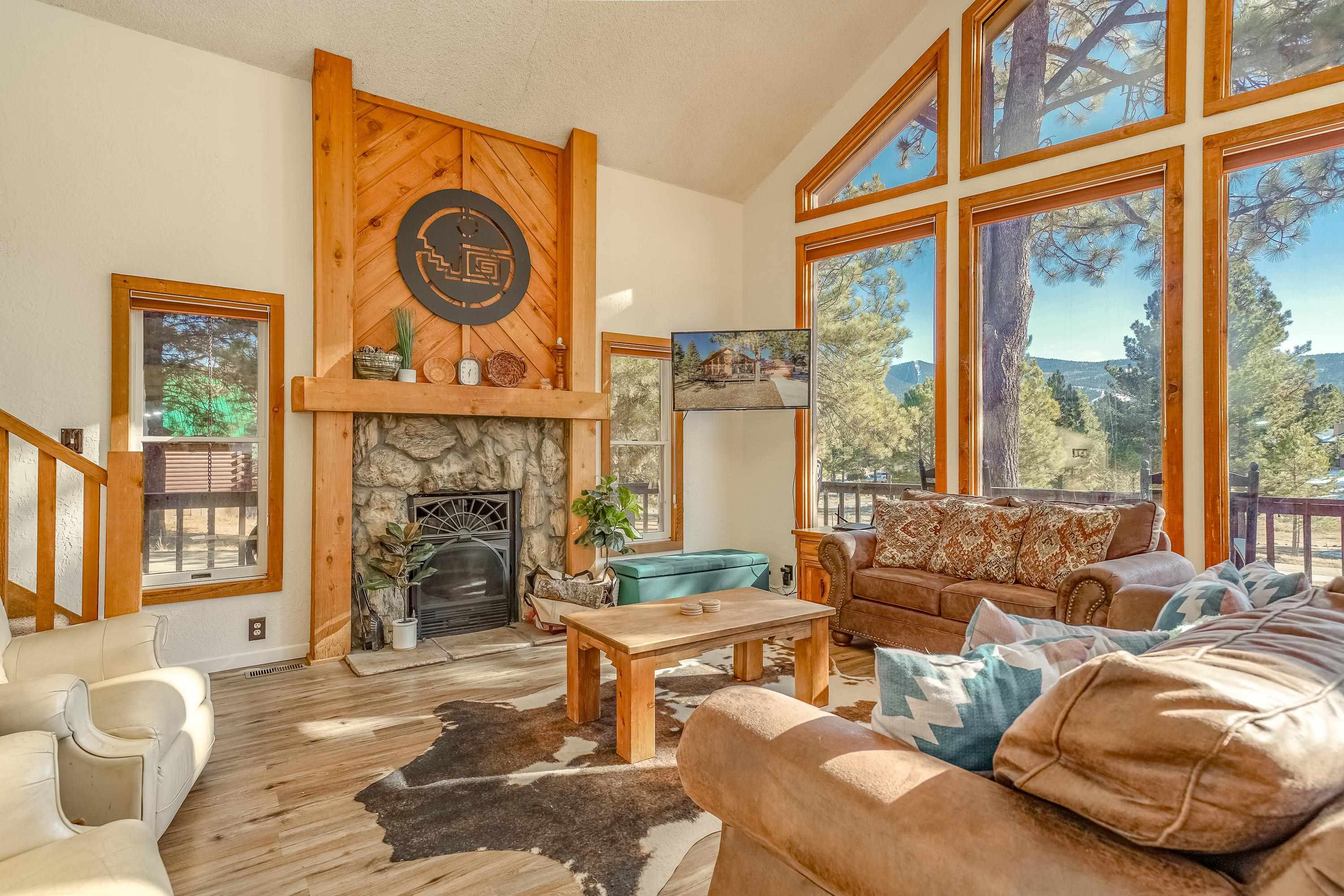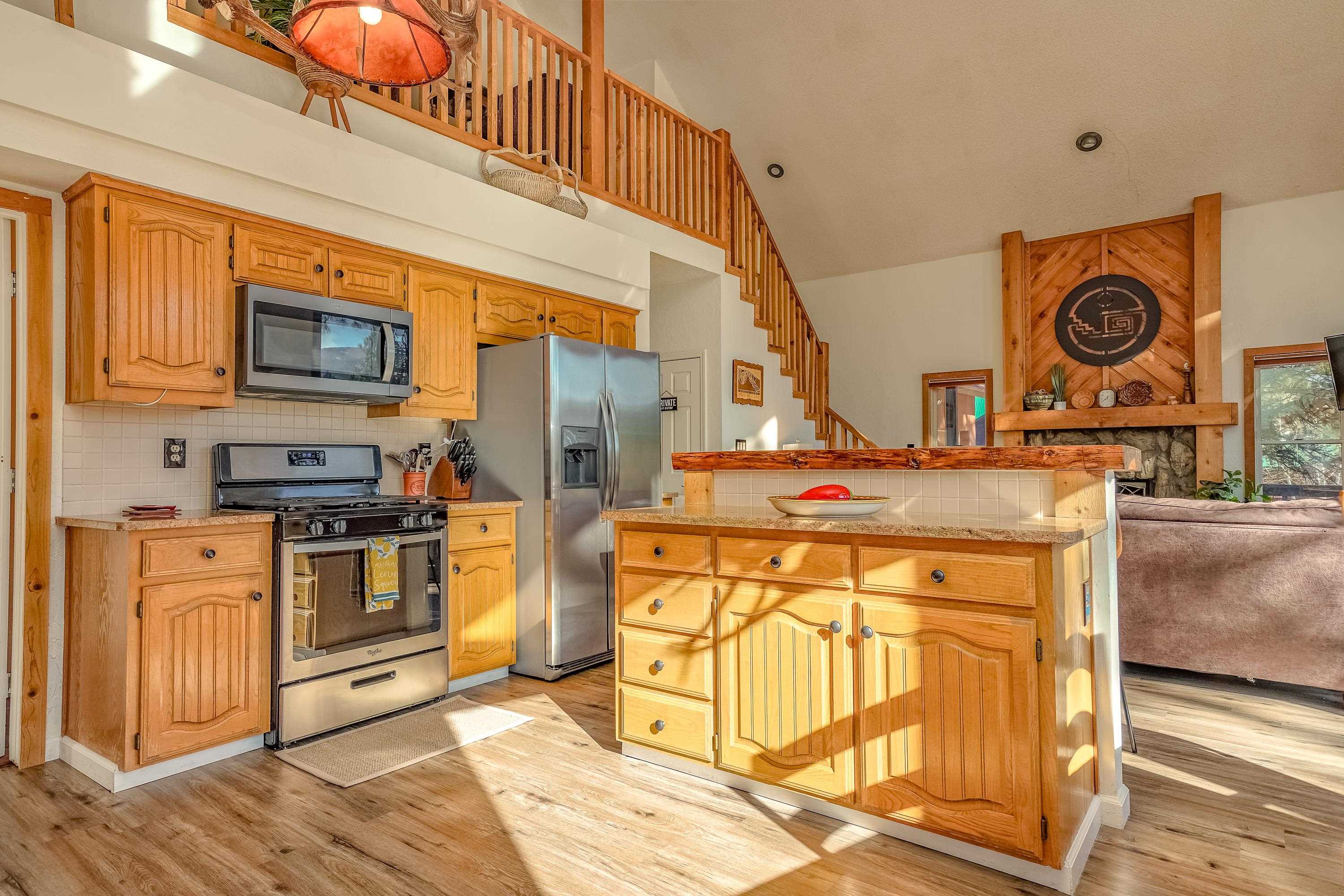 Welcome to 20 Armijo Drive, an Angel Fire chalet in an unbeatable location, just minutes from the grocery store, coffee shop, and local hiking trails. Set on a lovely 0.55-acre lot, this inviting mountain home offers ski area views, a functional layout, and plenty of space for family and friends to spread out comfortably. Step inside to a large mudroom entry, perfect for dropping coats and gear after a day on the slopes. The main living area features vaulted ceilings and oversized windows that bring in beautiful natural light, flowing into an open kitchen and dining space ideal for gatherings. Expansive deck space gives you plenty of space to relax outside - whether you’re chasing sunshine or cooling off in the shade, there’s a spot for every mood. The main-level primary suite makes for easy living, along with an additional guest bedroom, full guest bath, and laundry on the same floor. Upstairs, you’ll find a spacious loft (great for extra sleeping space or a cozy hangout area), plus another bedroom and bath. A private back deck adds the perfect place for quiet morning coffee or winding down after a day of adventure. With an attached 2-car garage, concrete driveway, and easy year-round access, this home is a fantastic fit as a full-time residence, vacation getaway, or potential rental in the heart of Angel Fire.
