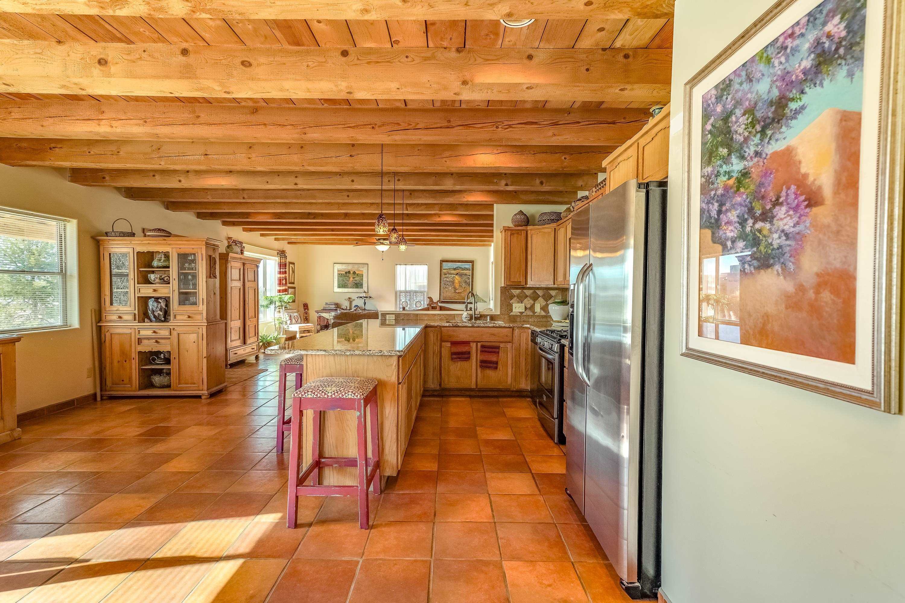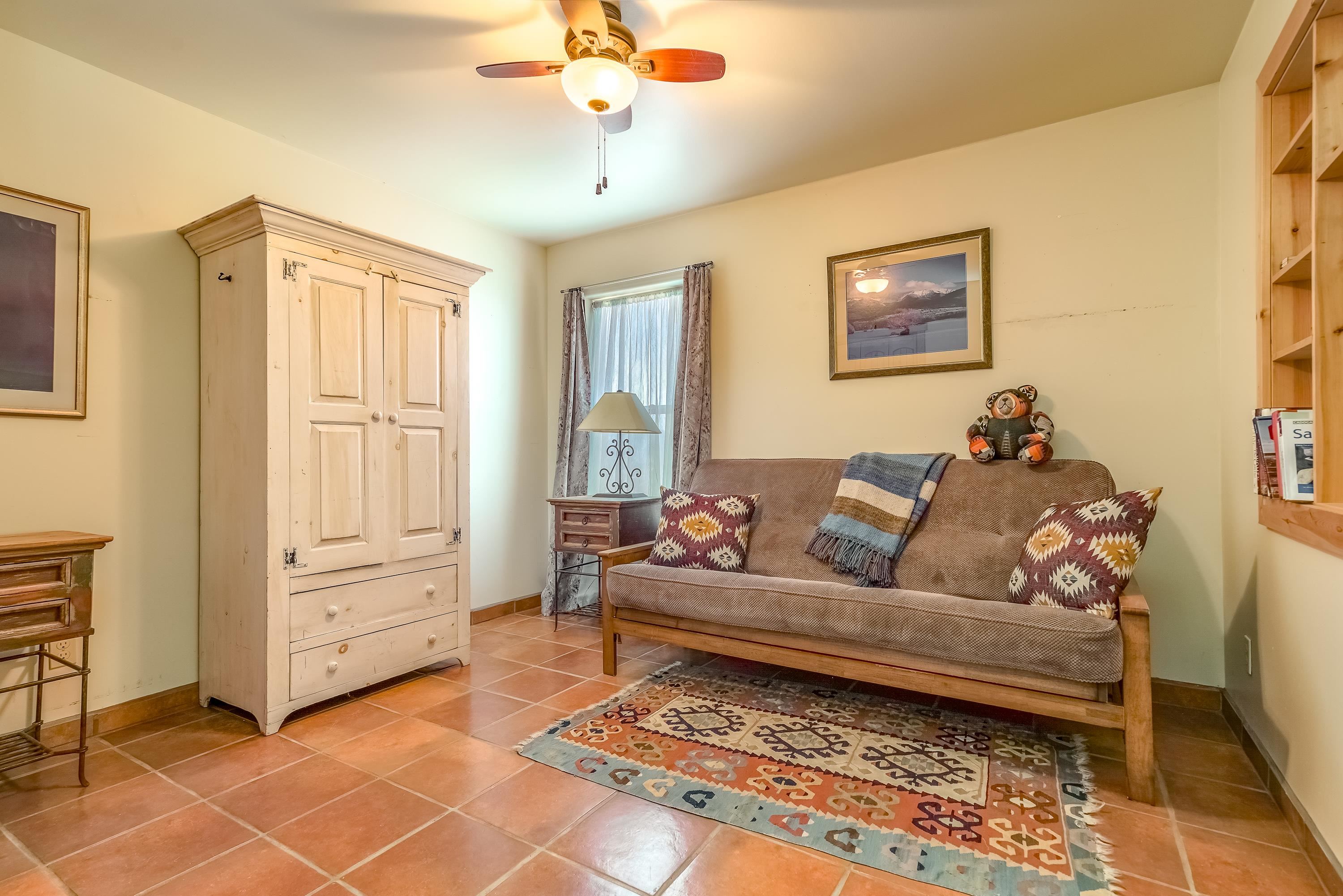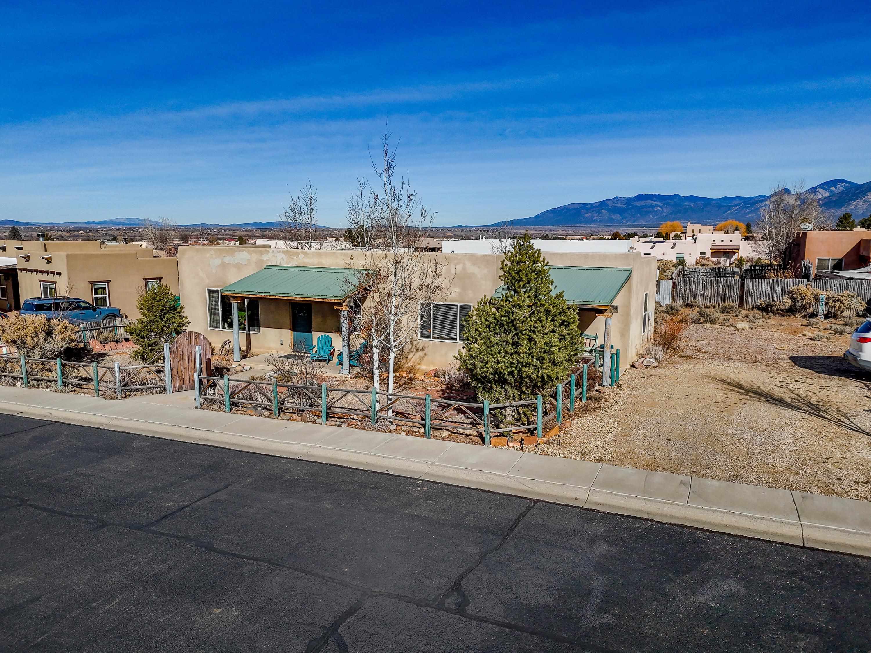 This beautiful 2 bed 2 bath home is sure to delight. Owned by renowned artist Nancy St Lawrence. Enjoy an open and spacious living area filled with natural light from abundant windows offering lovely views. The upscale kitchen is thoughtfully designed and features granite countertops plus stainless-steel appliances. Relax on the covered porch taking in great mountain views and unforgettable sunsets. The thoughtfully designed split-bedroom layout offers privacy and the primary suite and has a large walk-in closet. There is a charming artist’s studio or office attached which has its own entrance ideal for a quiet workspace. A truly special home combining comfort, creativity, and convenience. Conveniently located near the hospital in the Las Olas Subdivision, offering established covenants and close access to walking trail. Take advantage of Taos Air’s direct flights to Dallas and Austin, enhancing effortless travel.