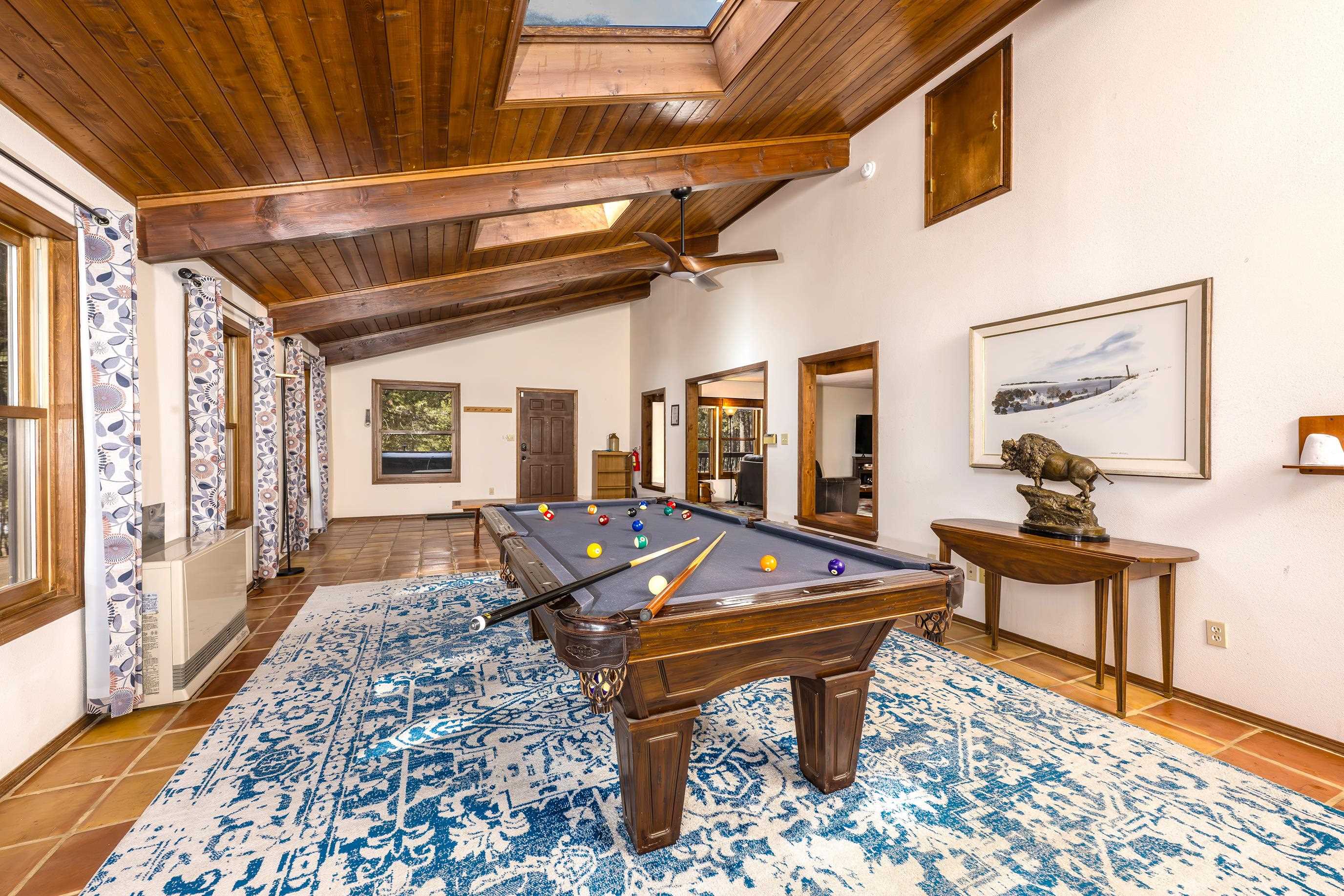 Spacious and inviting, this 3,300 sq ft mountain home is just five minutes from all of Angel Fire Resort’s top amenities. Featuring 5 bedrooms and 3 bathrooms, the home offers plenty of room for family and guests, with three separate gathering areas, including a game room with a pool table—perfect for entertaining. The heart of the home is the warm and welcoming living space, anchored by a stunning large stone fireplace where everyone can come together after a day of adventure. After skiing, golfing, or mountain biking, unwind in the hot tub or gather around the fire pit on the expansive deck, ideal for enjoying cool mountain evenings. The primary suite is conveniently located on the main level, offering easy access and comfort. Additional features include a two-car garage and a rare bonus: with the right offer, the Jeep, SXS, and trailer can be included. All of this sits on a level one-acre lot—no steep hills to climb—making year-round access easy and stress-free. This is a true mountain retreat with space, comfort, and unbeatable proximity to everything Angel Fire has to offer.