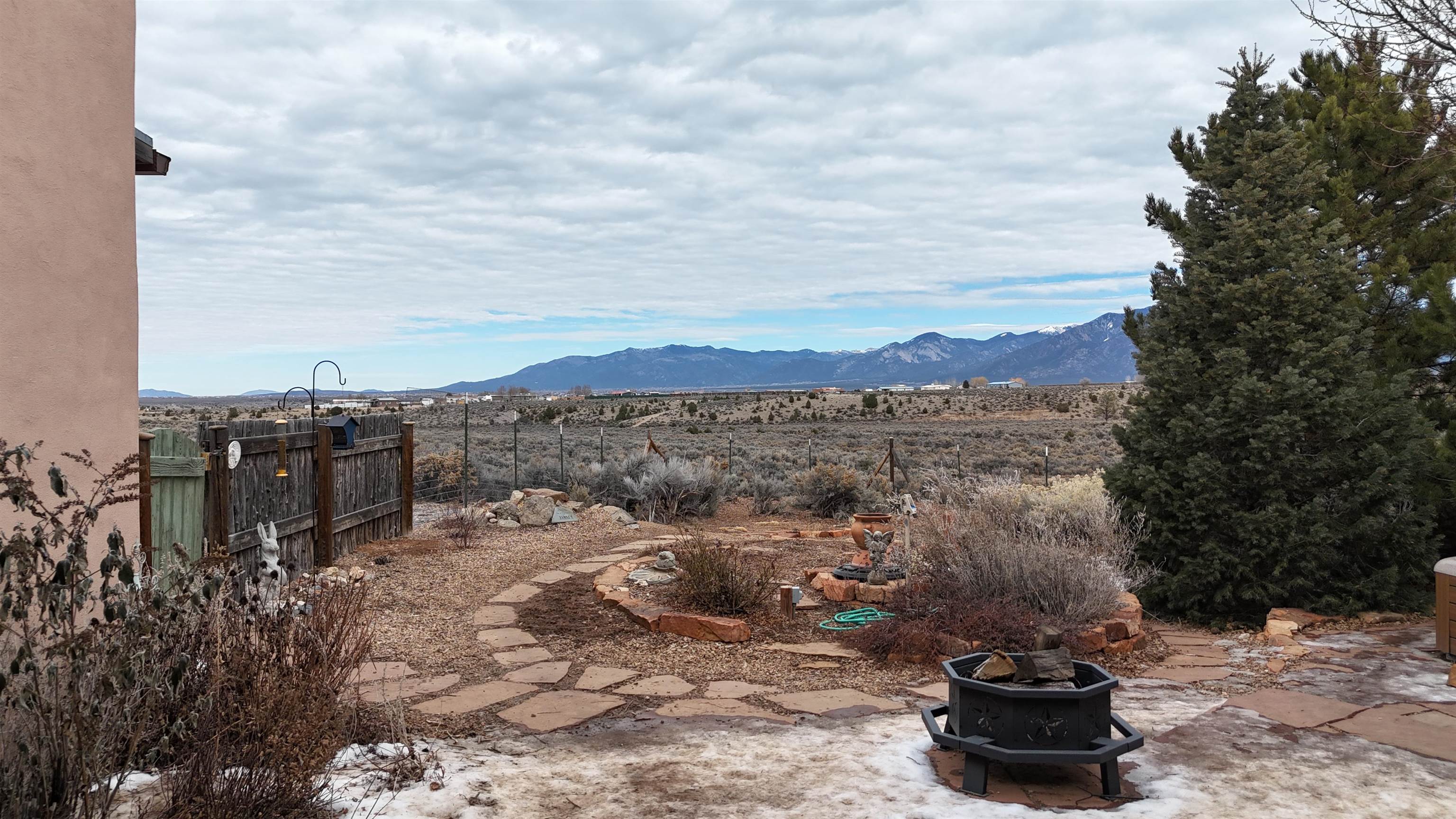 SUNNY, SERENE AND TOTALLY SOUTHWEST! Classic Southwest design meets thoughtful living in this artistically crafted, solar-oriented 3 bedroom, 2 bath home in the desirable Vista Linda Subdivision — just minutes from town and near the Taos Country Club. Built by Ecobuilders using sustainable materials, this residence embraces true Northern New Mexico style with hand-troweled natural tinted plaster walls, traditional vigas and tongue-and-groove ceilings, and warm earth-toned tile floors that glow in the natural light. The open floor plan flows effortlessly between the spacious living room, kitchen, and dining area-- ideal for dinner parties, holiday tamale-making, or simply admiring your excellent taste. The beautiful wood-burning fireplace anchors the living space with timeless Southwest character. The radial vigas over the dining room add a subtle drama that whispers "yes-- I'm fabulous." The kitchen is well-equipped with gas oven, gas range, dishwasher, refrigerator, generous panty and separate laundry room. The primary suite is full of light and luxury, with copper sinks, jumbo walk-in closet and direct access to the backyard and hot tub. (Morning coffee soak? Late-night stargazing? Both feel appropriate.) Two additional bedrooms and full bath sit off a sunny hallway-- perfect for guests, studio space or a home office you'll pretend you're very disciplined about. Beyond the kitchen is a large north-facing family room with its own sink offering endless flexibilty-- art studio, wet bar, media lounge, creative lab, yoga space... you choose. Soft light, big views, no bad angles. Step outside to a covered portal designed for lingering. Room to dine, room to lounge, room to exhale. Perennial gardens, mature trees, and established landscaping on drip irrigation surrounds the home and softens the natural high-desert setting, creating a peaceful outdoor retreat framed by stunning mountain views. There's even a hot tub for soaking in the views or the star-filled Taos skies-- because sometimes you just need to float and contemplate life choices. Ample parking for entertaining and a detached carport with storage means there's room for guests, gear and outdoor toys. Behind the beauty? Smart design. Passive solar, electric solar panels, pumice exterior wall construction (north, east & west), a private well and a rainwater catchment system with cistern for irrigation reflect forward-thinking, energy-efficient living. Sustainable never looked so good. Located near the Taos Country Club, Slide + Rift hiking + biking trails, and offering convenient access to Pilar and the Rio Grande for rafting, kayaking, and world-class fishing — this home is the perfect balance of Southwest detail, sustainability, and access to the wild beauty that makes Taos.... Taos.