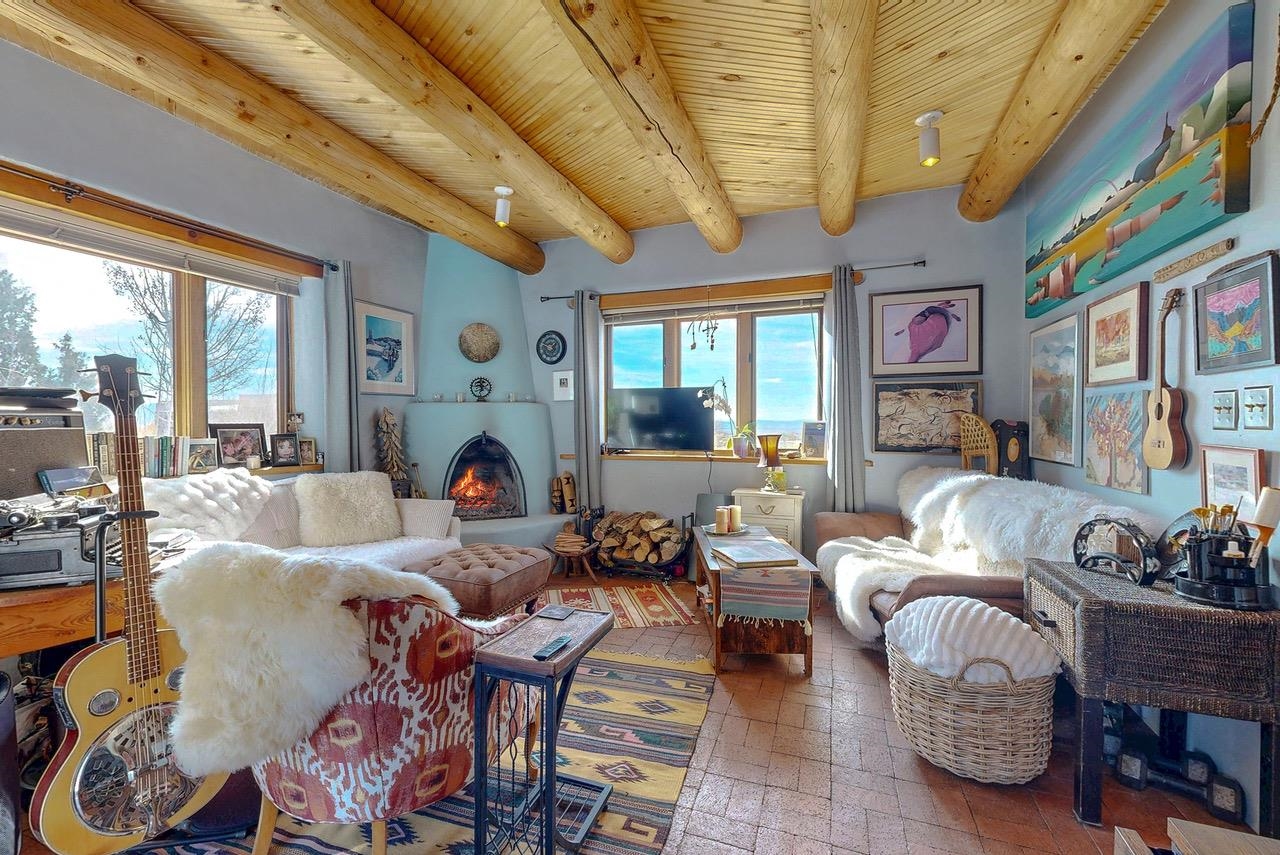 Authentic Adobe Home in Desirable El Salto with Casita & Mountain Views Nestled in the highly sought-after El Salto area, this authentic adobe-and-stucco property offers timeless Northern New Mexico charm amid breathtaking mountain views. The main residence features 2 bedrooms and 2 baths, complemented by a detached 1-bedroom, 1-bath casita — ideal for guests, rental income, studio space, or multigenerational living. Both structures are traditional adobe construction with classic stucco exteriors, reflecting the enduring architectural heritage of Taos. The main home showcases exposed vigas, tongue-and-groove wood ceilings, warm brick flooring, smooth plaster walls, and a charming kiva fireplace that anchors the living area. Expansive windows frame dramatic views of the surrounding mountains and mesa while filling the home with beautiful natural light throughout the day. The kitchen maintains regional character with handcrafted tile details and scenic outlooks. Bedrooms are tranquil and sun-filled, while bathrooms feature colorful tile accents consistent with classic Southwestern style. Outside, the property enjoys wide-open skies, mature trees, and a peaceful setting that captures the magic of El Salto. The detached casita offers privacy and versatility, making this property well-suited for full-time living, a part-time retreat, or investment potential. Located just minutes from the Village of Arroyo Seco with its charming shops, restaurants, galleries, and artisan culture. World-class skiing at Taos Ski Valley is only a short drive away, and the Historic Taos Plaza with additional dining and shopping options is conveniently close. A rare opportunity to own an authentic adobe home and casita in one of Taos’ most desirable and scenic locations. Don't let this gem slip away! MATTERPORT VIDEO - CASITA https://my.matterport.com/show/?m=RUb6rfUrNaE DRONE VIDEO: https://vimeo.com/1164014754 Fire in fireplaces is virtually staged. Seasonal change photos are virtually staged.