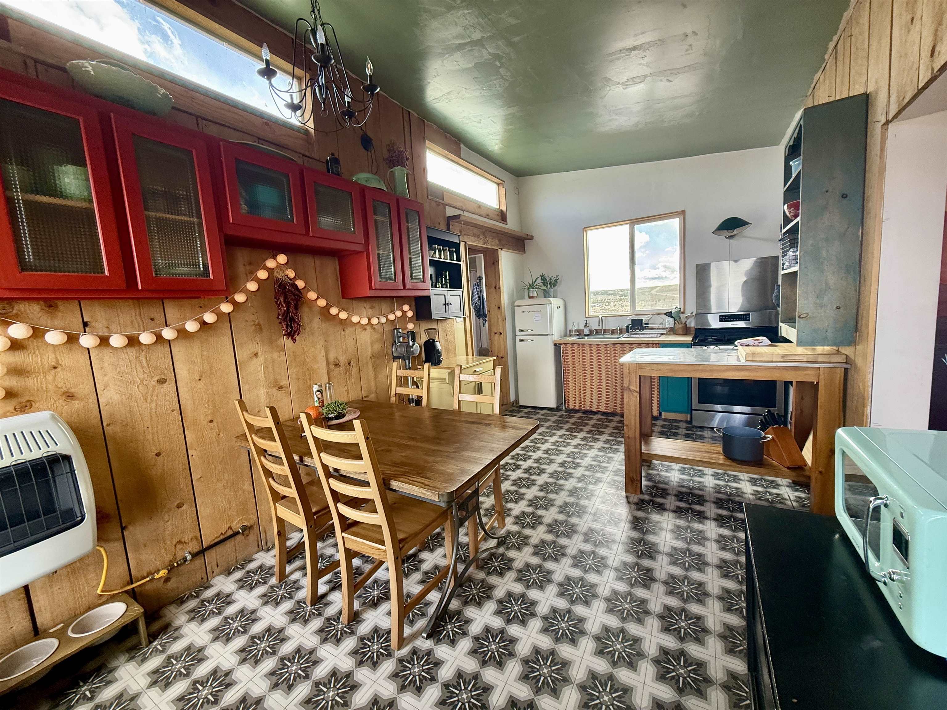 With such an approachable price this expansive 8.75 acre property offers a rare opportunity for a full-time residence, a private retreat, or an investment with vision. Equipped with High speed internet, the two-bedroom, one-bath main house is ready for its next chapter. Newer appliances include a Rinnai on-demand water heater, kitchen wall heater, range, refrigerator, and washer/dryer. The living room picture window frames ever-changing skies. A freestanding, insulated studio offers flexible potential for creative space, guest quarters, or a home office, with roughed-in plumbing and a glamping-style outdoor bath in place. Slow down and look up in the tiny, primitive off-grid A-frame. With windows framing expansive night skies, this cozy retreat invites unforgettable stargazing—where shooting stars become part of your nightly ritual. The property also features two additional sites suitable for a tiny home or RV (existing tiny home not included; site currently rented month-to-month). 15 miles to Ojo Caliente and 24 miles to Taos Plaza.