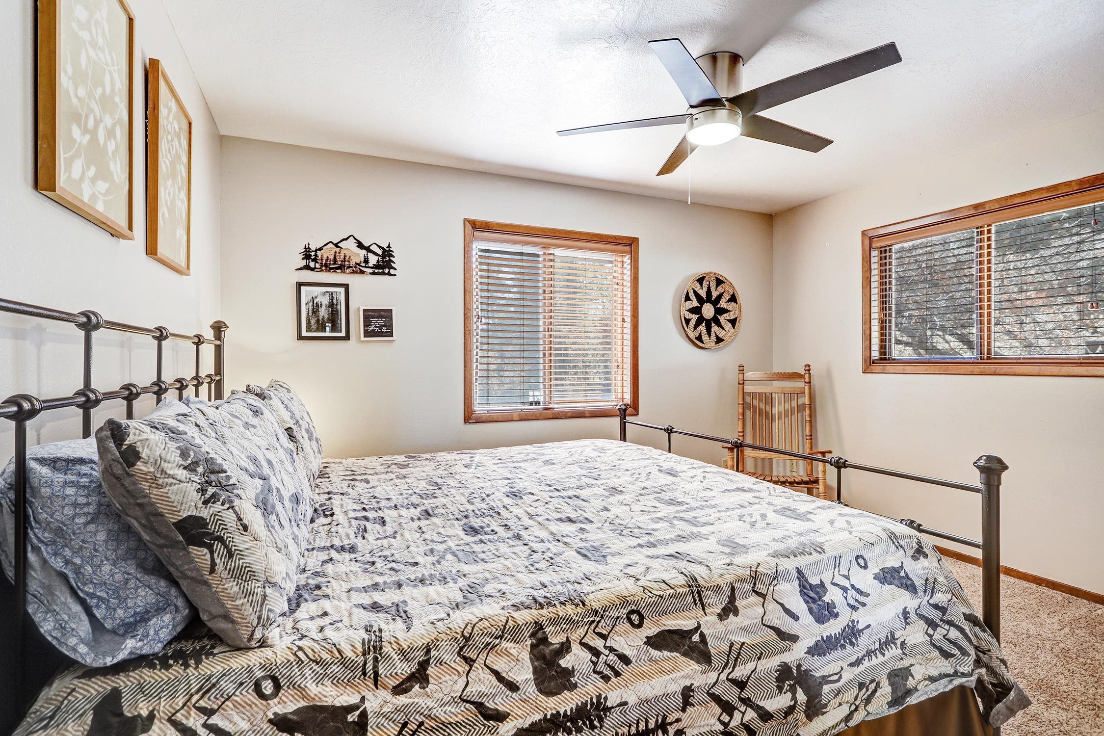 You're going to love this place! It's tucked away at the end of a quiet cul-de-sac, so you get extra privacy. Plus, it backs up to a green belt, meaning you can step right out onto the hiking trails. The views of the forest and mountains from the kitchen, dining, and living areas are absolutely incredible. There's plenty of outdoor space with covered decks on the front and side, and the primary bedroom even has its own private covered deck—perfect for morning coffee. The previous owners put on a new metal roof and repaved the driveway, so there's room for all your cars. Current owner repainted interior and updated the furnishing. Downstairs, you'll find a second living space, a bedroom, a bathroom, and the laundry room. Best of all, it comes fully furnished (with just a few small exceptions), making moving in a breeze!