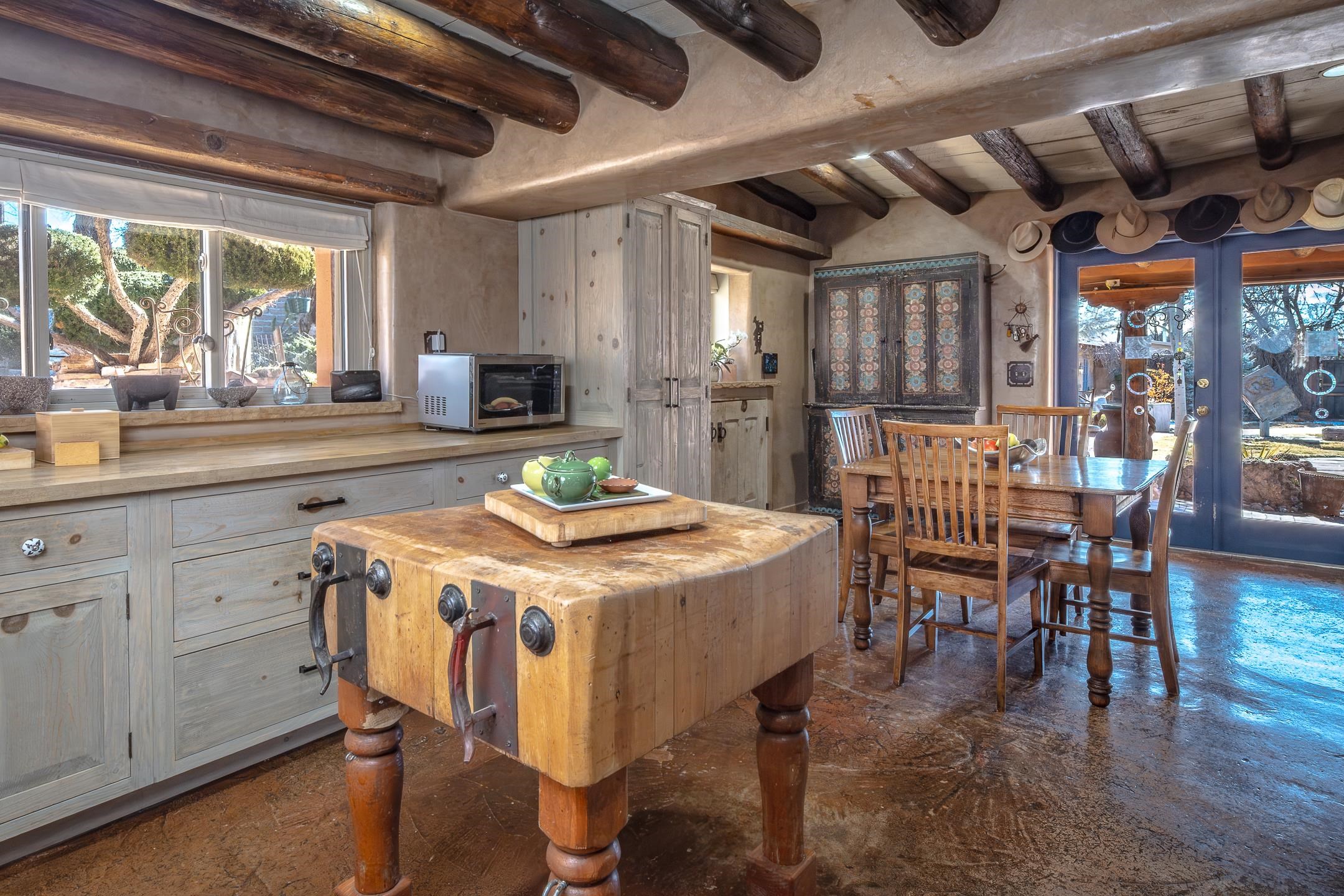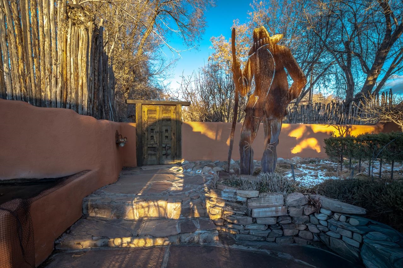 Step into the timeless charm of this historic 1940s adobe home nestled in the heart of Ranchos de Taos, New Mexico. Rich in character and warmth, this beautifully preserved 2-bedroom, 2-bath residence blends authentic Southwestern architecture with inviting indoor–outdoor living. Thick adobe walls, hand-hewn vigas, warm wood floors, and classic tile create a cozy and welcoming ambiance throughout. The living room features a traditional wood-burning fireplace—perfect for gathering on cool Taos evenings—while the formal dining room offers a second wood-burning fireplace, adding both charm and comfort for intimate dinners and festive celebrations alike. The kitchen is filled with natural light and garden views, offering an abundance of windows, a charming kitchen-dining area, and a wood-burning stove that enhances the home’s timeless appeal. It’s a space designed for both everyday living and memorable entertaining. The primary bedroom provides a peaceful retreat with its own ensuite bathroom. A well-appointed guest bedroom and separate guest bath ensure comfort and privacy for family and visitors. Outside, the property unfolds into an expansive courtyard and garden oasis with a true park-like setting. Mature trees, seasonal blooms, and thoughtfully designed landscaping surround a tranquil koi pond and inviting fire pit. Covered portals with a wood-burning fireplace create an extraordinary outdoor living space with ample seating—ideal for entertaining under the enchanting New Mexico sky. A small fruit orchard further enhances the charm and functionality of this unique property. Additional features include: A 374 sq. ft. heated studio with French doors and abundant natural light—perfect for an art studio, home office, yoga space, or additional living area. A 359 sq. ft. garden shed ideal for tools, storage, and gardening needs. Conveniently located near dining, shopping, golfing, and just a short drive to world-class skiing at Taos Ski Valley, as well as the historic Taos Plaza, this property offers the perfect blend of tranquility and accessibility. This is more than a home—it’s a soulful retreat rich in history, beauty, and possibility. Schedule your private showing today and experience the magic of this extraordinary Ranchos de Taos adobe for yourself.