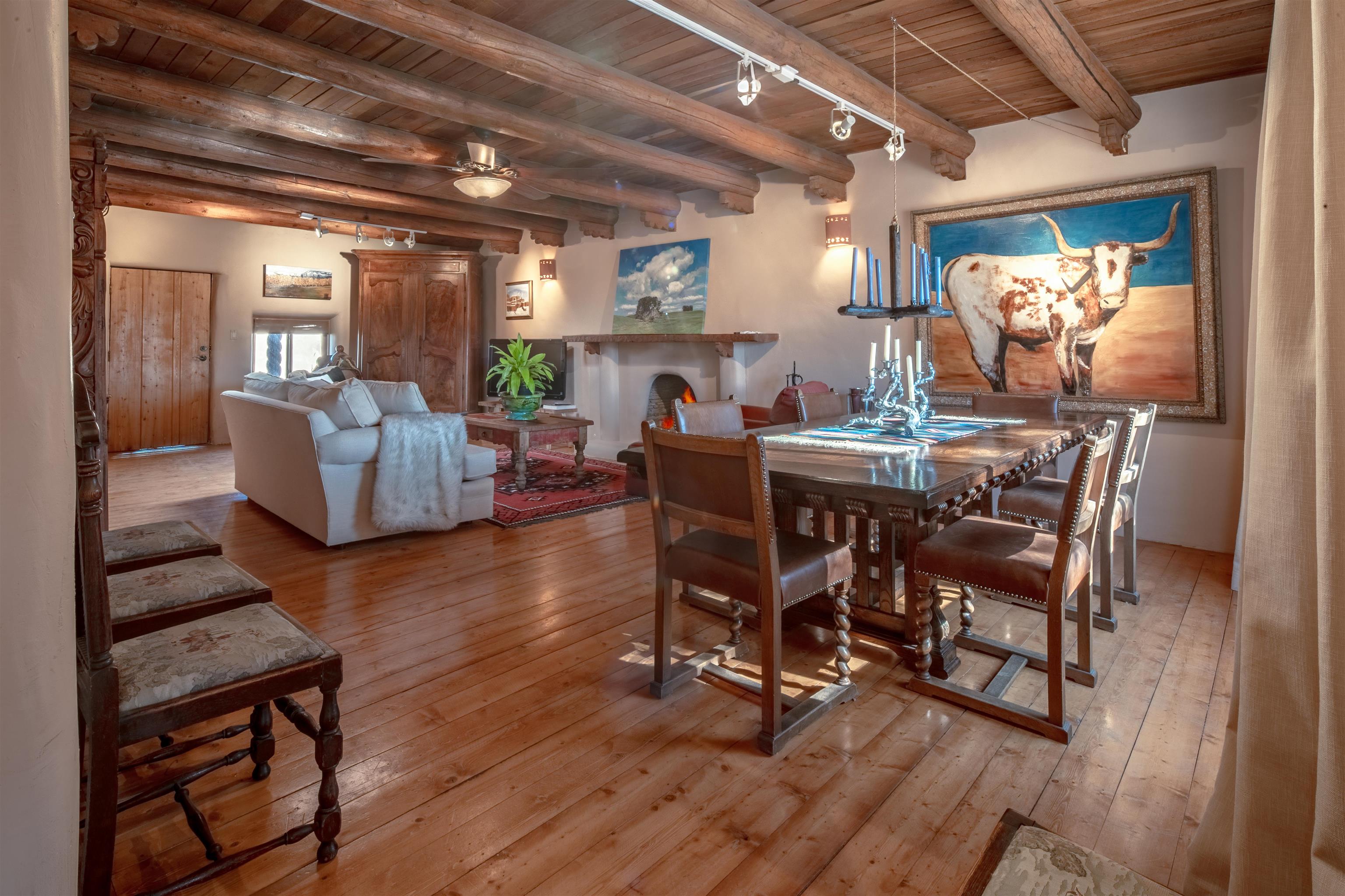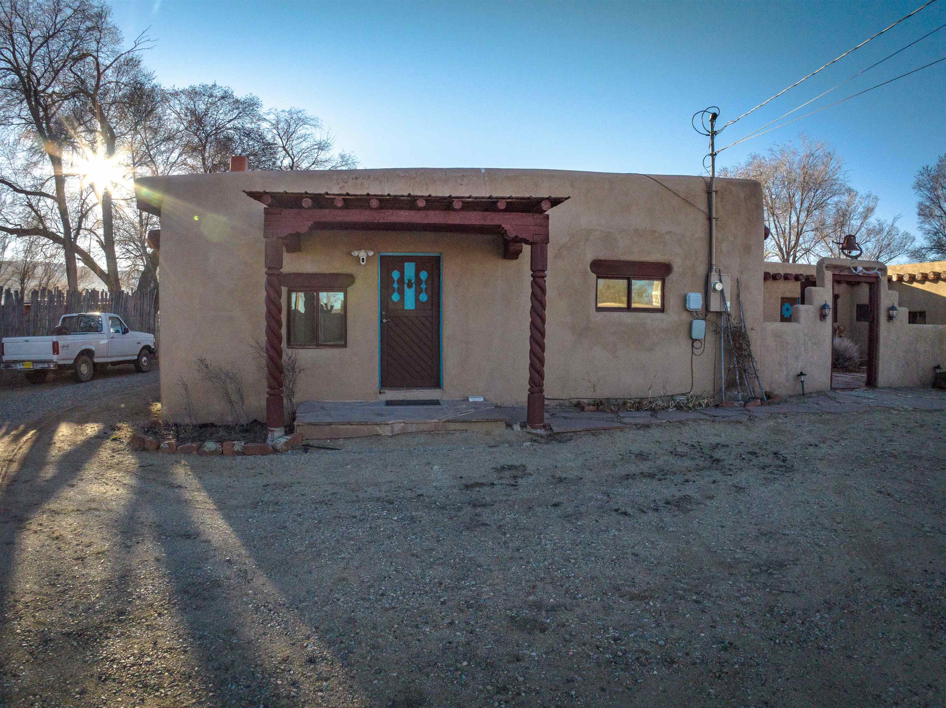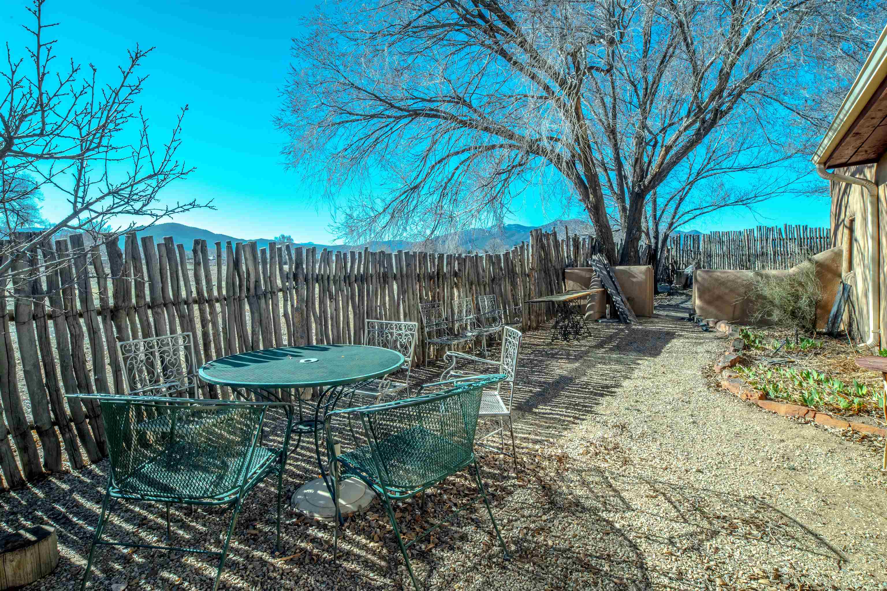 Single-level artistic Southwest home featuring three bedrooms and two baths, designed with charm and character throughout. Multiple living areas offer flexible space for relaxing or entertaining, while cozy bedrooms provide a comfortable retreat. Enjoy open views and authentic Southwest flair, complemented by a bright breakfast area and a dedicated dining room. A welcoming open courtyard entrance creates a beautiful first impression and a peaceful outdoor gathering space. The property also includes a separate artist studio—perfect for creative work or a private office. Additional features include a detached garage with storage space and fully fenced yard.