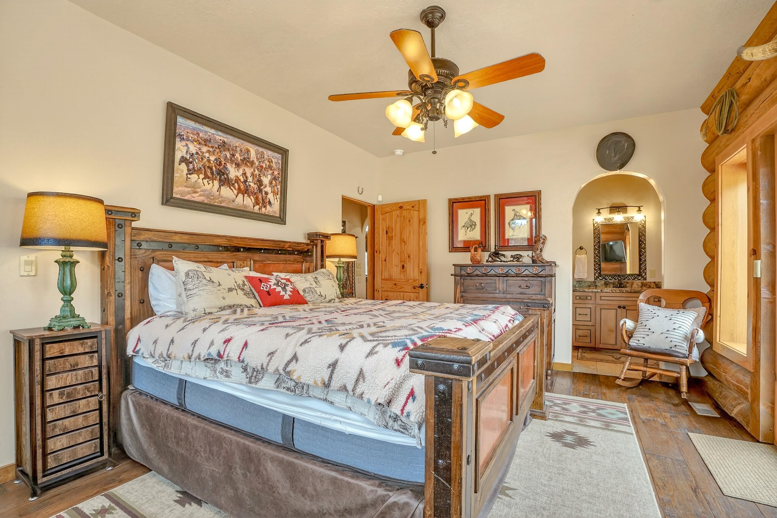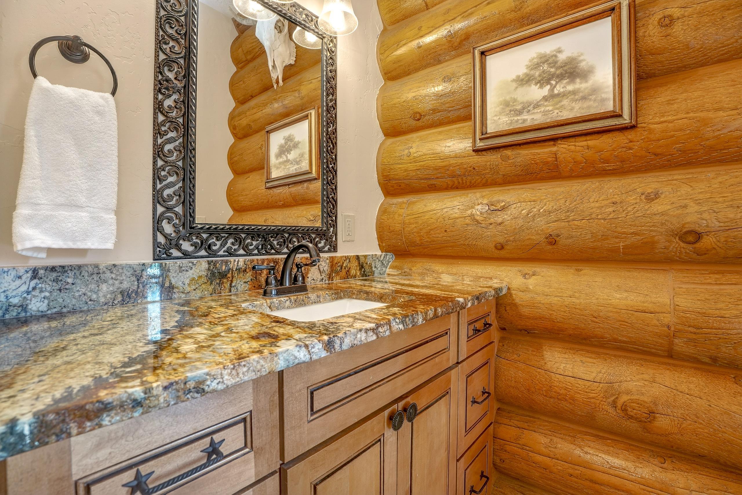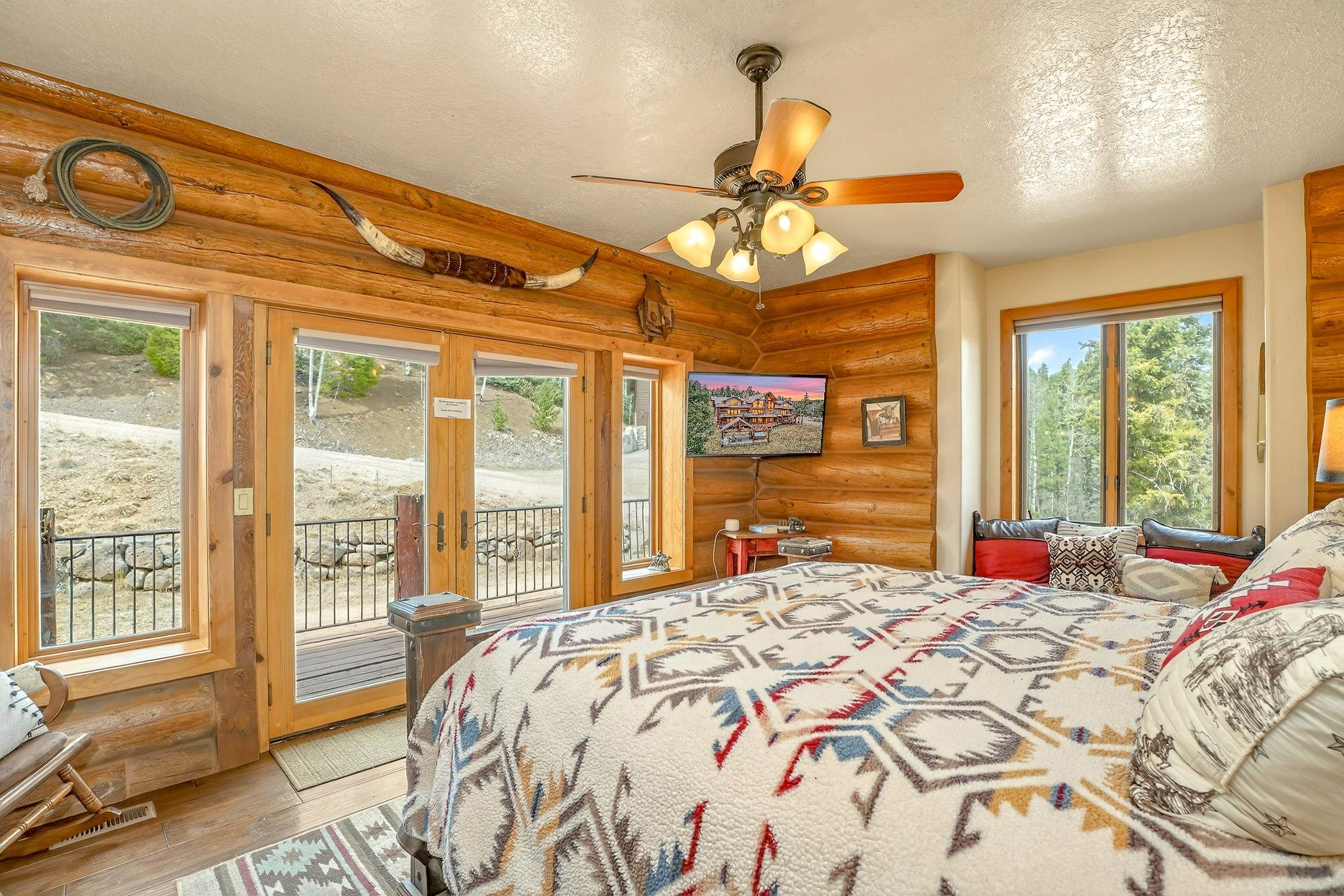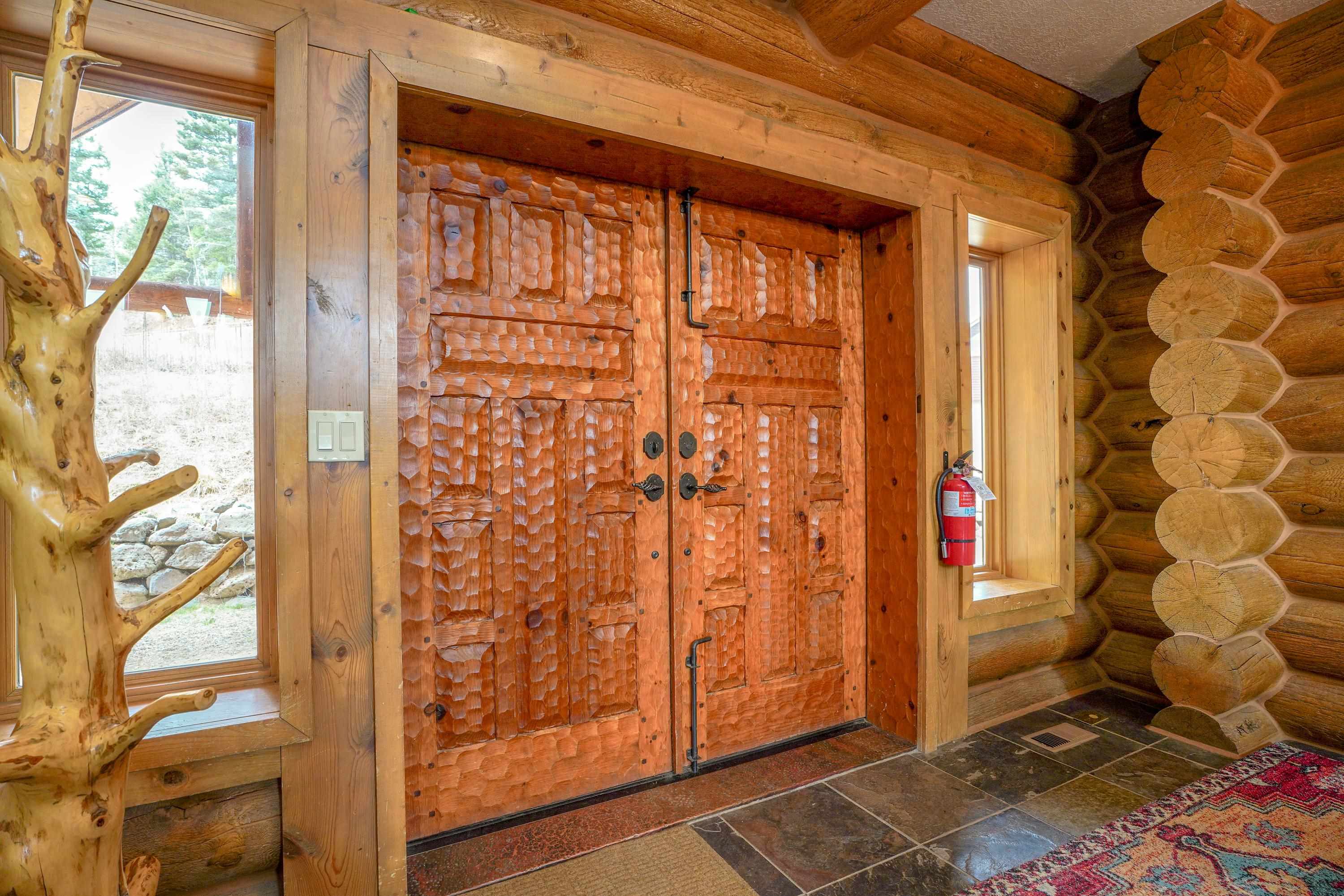 Mountain Luxury Living At Its Finest! This beautiful log and stucco residence boasts 4 spacious bedrooms, 5 bathrooms, a safe room, a children's game room and multiple living areas. Highlighted with impressive natural log columns, soaring ceilings and a wall of windows with great views. A massive rock fireplace serves as the centerpiece of the expansive living room. The kitchen is thoughtfully designed with custom cabinetry, granite countertops, and high-quality appliances. This home offers two additional living or recreational spaces, making it ideal for large or extended family gatherings. Downstairs the "bear den" has plenty of space for game-night and the other room has unique custom bunkbeds which is perfect for the little ones. Step outside to enjoy multiple outdoor spaces, including a hot tub gazebo, a main-level deck, and a lower deck—perfect for relaxing and taking in the beautiful views toward the Valley of the Utes. Located a couple of blocks from Monte Verde Lake, this stunning home offers easy access to all the amenities Angel Fire has to offer, including skiing and golfing. Additional features include a large two-car garage and a covered drive-up portal at the front of the home, spacious enough for convenient sheltered parking. Generates fantastic rental income with potential for growth.