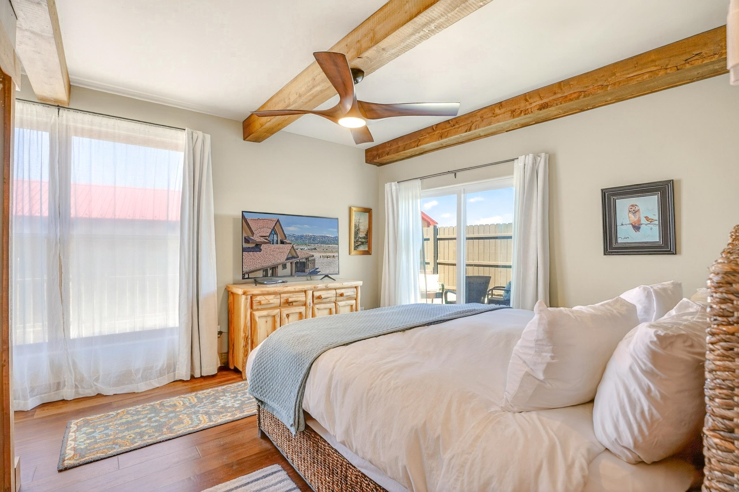 Rustic Elegance in Angel Fire. Experience the perfect blend of mountain charm and modern luxury in this beautifully appointed 4-bedroom, 3.5-bath condominium nestled in the southern Rockies. Designed with quality craftsmanship and attention to detail, this spacious home offers the ideal setting for relaxing retreats or full-time living. Construction build out of the condo was just completed in 2024. Inside, an open-concept layout welcomes you with warm wood accents, custom cabinetry, and granite countertops. The chef-inspired kitchen is a true centerpiece, boasting premium finishes and ample space for entertaining. The inviting living area features a cozy fireplace, creating the perfect gathering spot after a day of skiing, hiking, or golf. Expansive windows fill the space with natural light. The main level hosts the private primary with an en suite bath and custom shower. Upstairs, you’ll find three generous bedrooms, including one with an en suite bath and another shared bath, providing plenty of room for family and guests. With 3.5 bathrooms and 4 bedrooms, comfort and convenience are always within reach. Step outside to your private patio, where you can soak in the hot tub and breathe in the crisp mountain air. Best of all, this property offers easy access to Angel Fire Resort amenities—ski slopes, golf course, trails, and more—without additional resort fees, just one HOA fee to the condo association. Whether you’re seeking a luxurious mountain escape or a year-round residence, this condo delivers the perfect combination of style, location, and lifestyle.