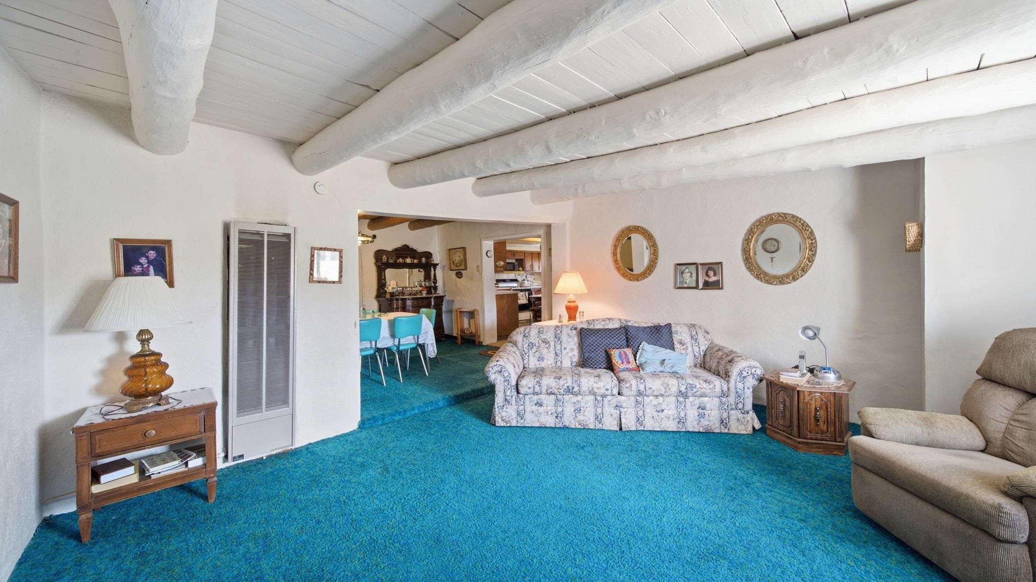 This classic adobe home located next to the Red River in the heart of Questa offers a plethora of opportunity. With traditional Southwestern character on a desirable 1-acre lot with stunning Sangre de Cristo Mountain views, this is where you want to make your home sweet home. Featuring four bedrooms and one and a half baths, the property is conveniently close to State Road 38, Eagle Rock Lake, and the Village of Red River. Inside, authentic Southwestern details match the adobe—like the viga and latilla ceilings that reflect the true character of this home. The generous footprint provides serious flexibility, perfect for setting up a home office, art studio, yoga space, or hosting guests. Maintaining its classic character, this home is in good condition for its age and presents an excellent opportunity for restoration or a fixer-upper project, should the next owner desire it. The location is ideal for outdoor enthusiasts, with fishing just minutes away at the Red River, Cabresto Lake, and Eagle Rock Lake, skiing and boarding at Red River Ski Resort, and plenty of trails for ATVs, hiking, hunting, biking, and more. A short drive south you will find downtown Taos for shopping and a plethora of activities; not far north you will reach the RCCLA for more outdoor exploring, or Denver and Colorado Springs for a weekend getaway. This home and land in the heart of Questa has some serious potential—don't miss the chance to shape its bright future!
